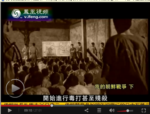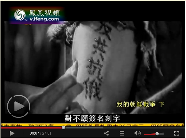 陈晓楠关于迫害志愿军战俘的解说结束,后面是迫害志愿军战俘的史料