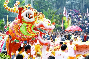 吃大盆菜、舞龙醒狮,昨日福田下沙村热闹非凡,以“深港两地心连心,元宵盆菜迎奥运”为主题的2500席盆菜宴招待海内外来宾与乡亲。