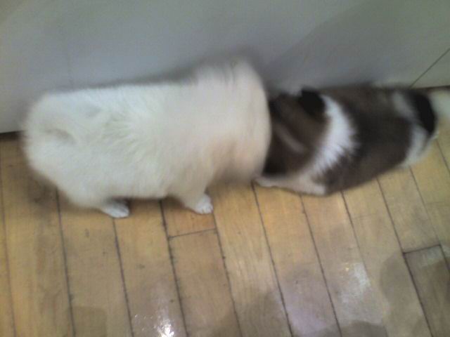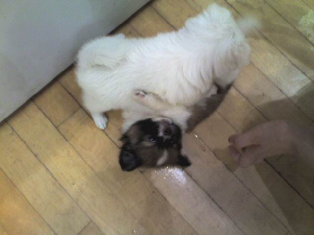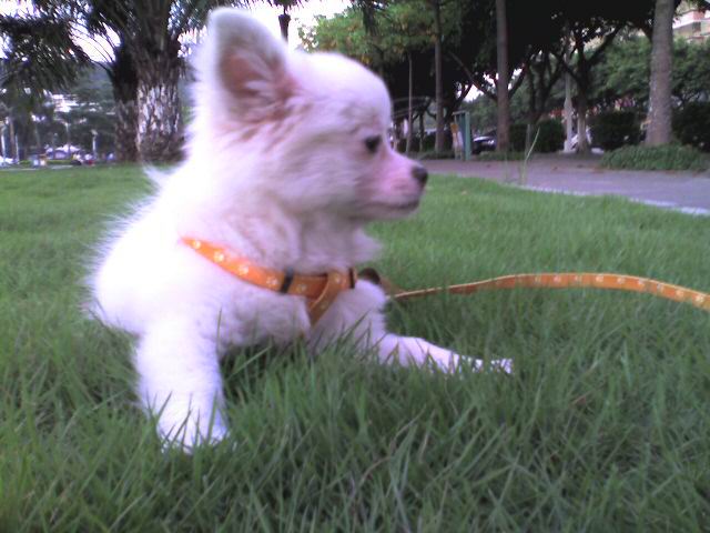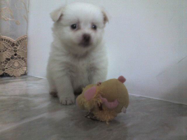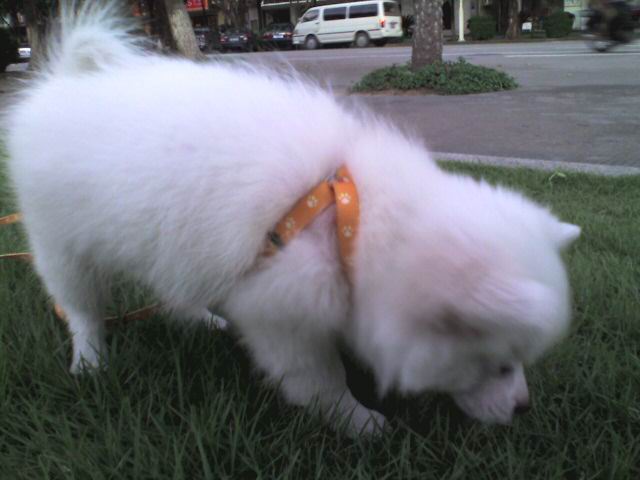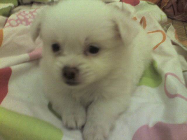 我的狗也是全白的```不过你的小狗```越大越不好看了~