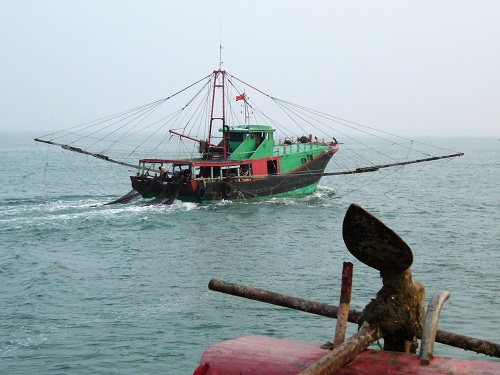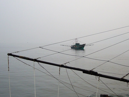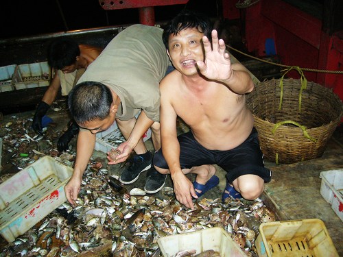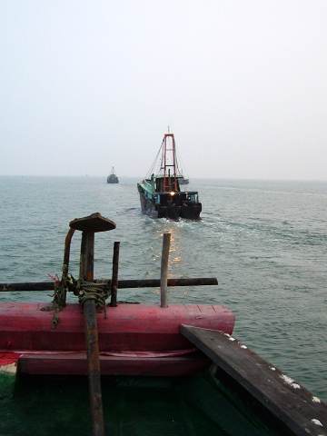 下午四时,我们准时上到了船上,这是一艘捕虾船,长宽我不好估计,大家自已判断吧.