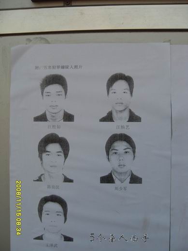 ••••••••••••目前5个杀人凶手其中的3人于2009年1月10号捉拿归案其余2人还逍遥法外,还有汪亚双多年前三兄弟联手杀死过樟木桐村汪尼森,是负案在身,针对以上情况我本人含泪特向上级政法机关提出控告,要求处理,为民除害。