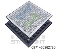结构组成与星光防静电全钢活动地板类似,但内腔是空的,无发泡水泥填料;地板的上下钢板和上表面贴面均冲制有通风孔.通风活动地板可与全钢防静电地板配套使用 ,也可单独使用,用于地板下部有通风要求的场所.