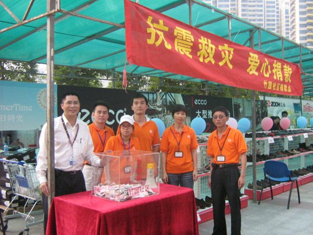 5月26日,看望从四川地震灾区来的同事的2个月大的小孩及家人,同事捐赠几千元从四川成都飞来的机票,送来奶粉、水果等慰问。