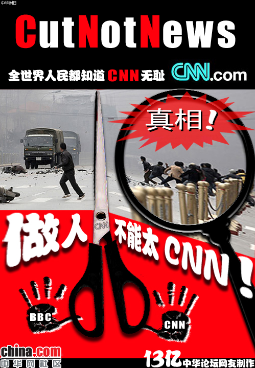 曾几何时,胡绩伟与胡乔木之间有关《人民日报》是党性高于人民性,还是人民性重于党性的理论争执,随着胡绩伟卸任人民日报社长一职后大致底定,党报跟党走是不可动摇的铁律。也因为在中国,为人民发声的媒体从来都没有好下场的血泪史促使任何一个境外新闻人都自动接受中国媒体是党的一部分,他们永远为官方辩护的天然逻辑。所以,外媒被“逐”出境后,反感北京官方propaganda的西方记者只能瞎子摸象式报道X藏发生的一切。这么说不是为CNN等媒体的扭曲报道找寻脱罪的借口,而是对有着光荣的拒不反省前科的中国政府和极端民族主义情绪浇盆冷水。