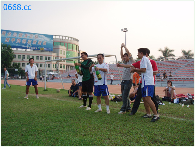 9月7日这天我们早早的做好准备.买好了香槟酒.就算这场球输了也没所谓.毕竟我们电白足球队己经打破了历史记录.