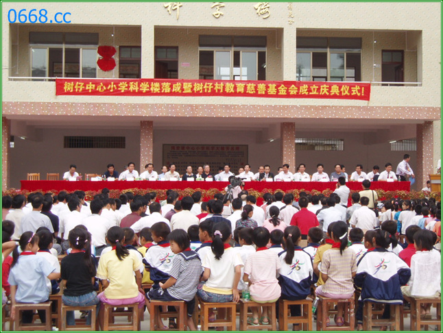 树仔中心小学科学楼落成暨树仔村教育慈善基金会成立庆典仪式! 2007年9月6日.各级领导、各界嘉宾及树仔中心小学全校师生全体欢聚
