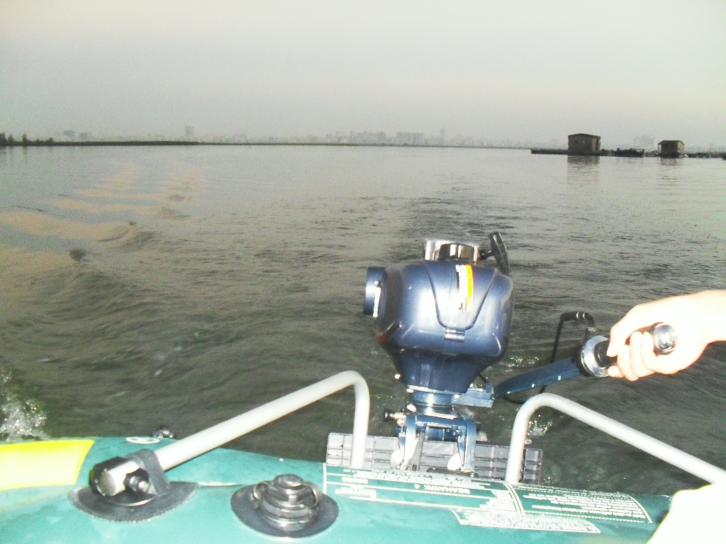 我们在7月4日下午由人民广场后面的码头出发,原计划是下午4点半到码头的,由于种种原因至橡皮艇下水时已经近6点了,那时海水已经慢慢的退潮了,导致我们的艇长和掌陀手费了好大的力气才把艇推出浅海~