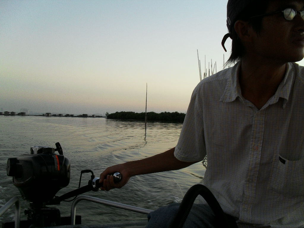 出到鱼排已经是傍晚7点多了,我们决定到朋友的鱼排处过一晚,顺便海钓海钓!图3那个就是我们的艇长阿志了!有着十几年海钓经验又懂得水性的他带着我们一路航行,我还是挺放心的!