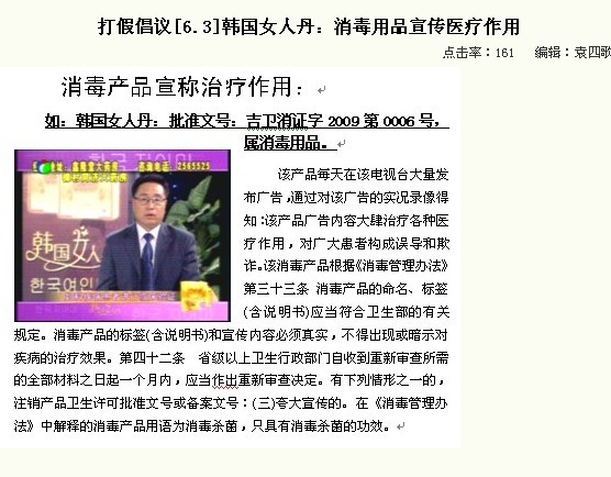 凡是在电视上做广告的药品我都不会去买,因为有九成九都是假的,希望有关部门一定要制止这种贩假、造假一味为了钱而毒害人民身心健康的伪劣药品在市面上流通,让那些狼心狗肺的人及帮凶(电视台)去死吧!!!!!!!