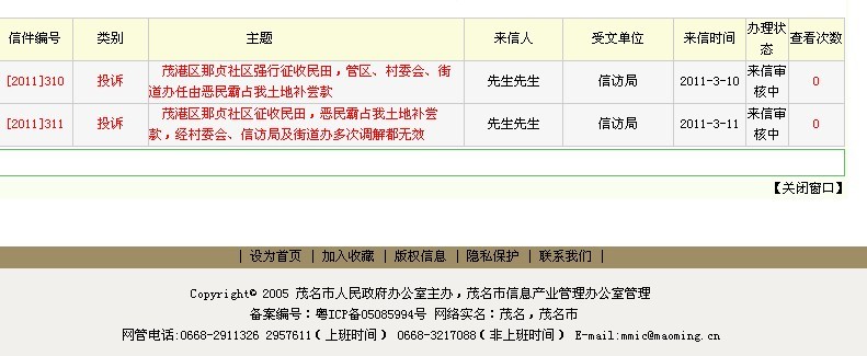 谢谢B哥还记得楼主,此事我在茂名人民政府网发贴与写信都六天了,现在还在申核中……