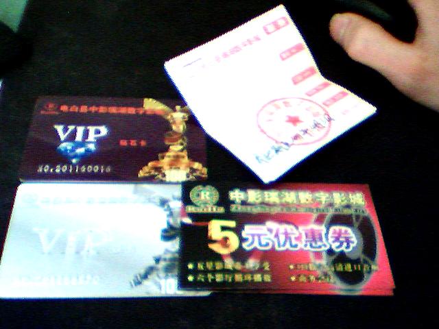 因为是刚看到那个什么《单身男女》有抽奖活动,于是就买了两张,刚上到二楼零食总台,就告知可以抽奖。一直以来我觉得抽奖就是基本的坑爹活动,于是就叫MM去抽,结果抽到两个安慰奖,(意料之中)是两张5元代用卷,就是买票可以当现金支付,有使用期限,10天的时间。