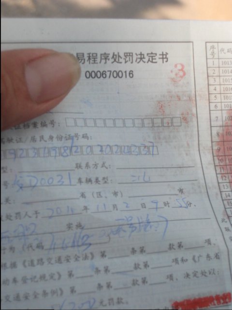 之后,交警给我开了罚单,罚款原因写着:无号牌!