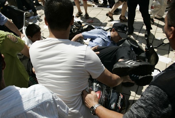 28号早,大陆江苏启东市政府、永安广场等地,共聚集了数万民众上街抗议。地方当局也出动数千警察和武警维安。民众表示,警察暴打百姓双方对峙,事态严重。一些场面十分火爆,连市委书记上衣都被民众扒了下来。