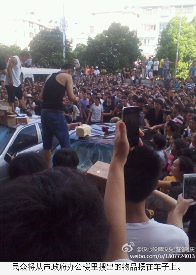 民众不满的情绪高涨,冲进市府办公室将文件丢出窗外后任其漫天飞扬、各种名牌酒、香菸等奢侈物品,被抬出供大家拍照存证。比较夸张的是,启东市委书记孙建华上衣被扒,据传,启东市长张建新也被打的落荒而逃。