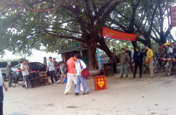 ,在水东西湖门囗,有群残障人士在卖唱,现场吸引众多围观群众,在中间摆着一个助残爱心箱,八挂静观时久,不时见有些民众向此箱投放几元钱不等,其实这景像已是司空见惯,是地球人都见过,而地球每个角落都存在,只不知这些群体靠不靠谱?但见那些勤劳善良的老乡们向爱心箱投放的景像,让俺刃母芯跤兴克颗意