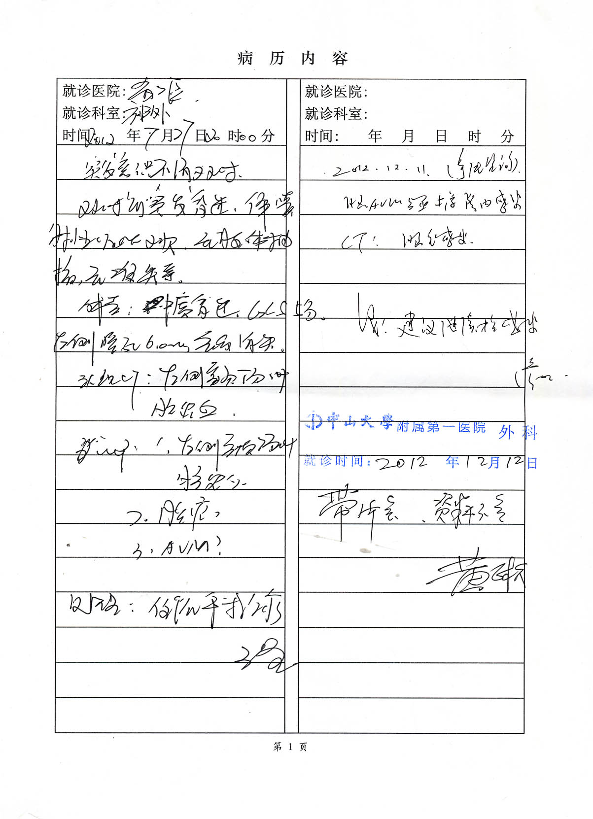 听朋友同学的一些意见说要把有关医院的资料放出来大家才会相信你,这里的资料不知道可以了没有,还有一些资料放在家里因为第一次手术过后我们出过一次院到本地医院治疗。后来病情反复恶化我们在11月份又再次回到这个医院。