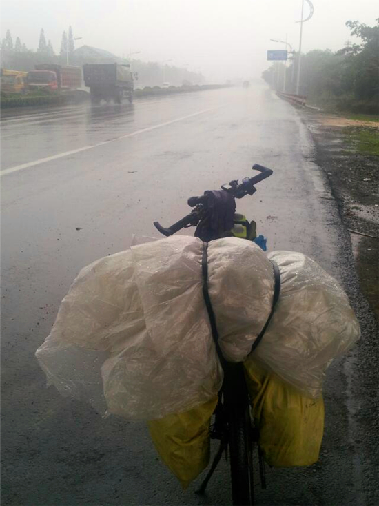 雨中骑行四五个小时到了南京,感谢老天免费帮我“洗车”