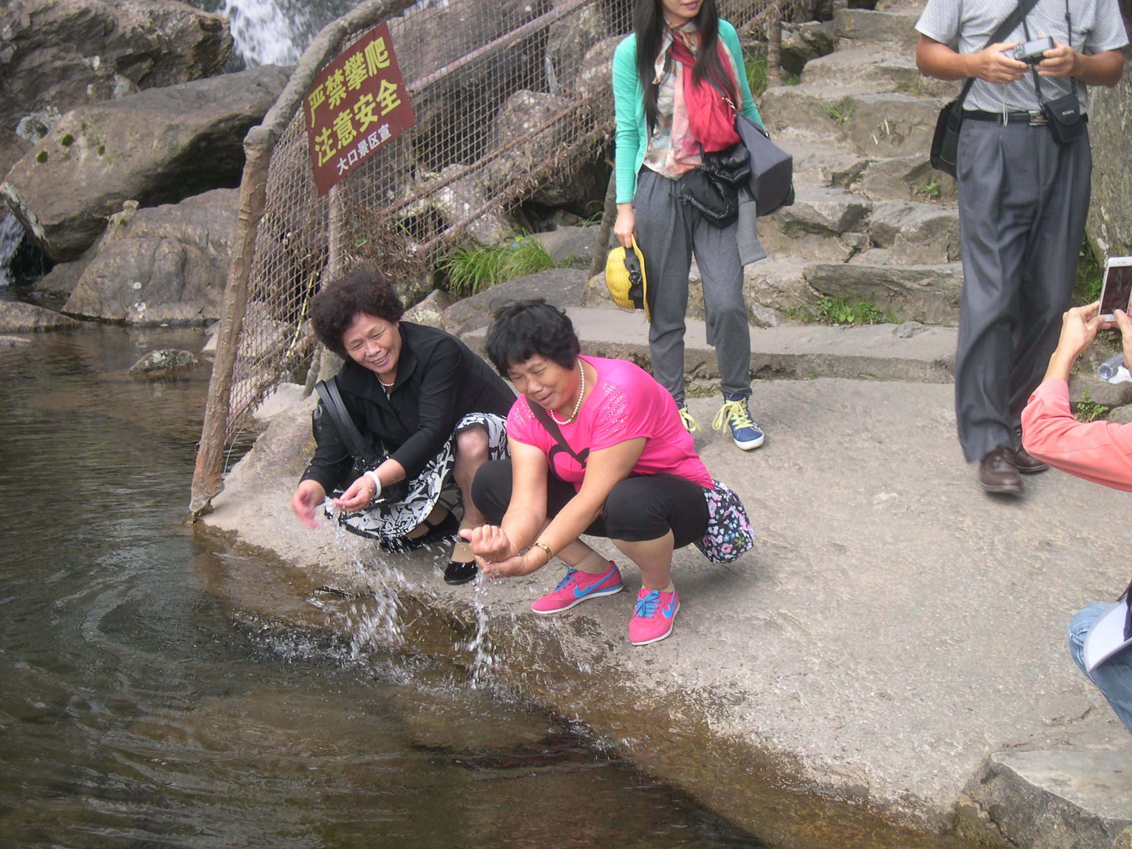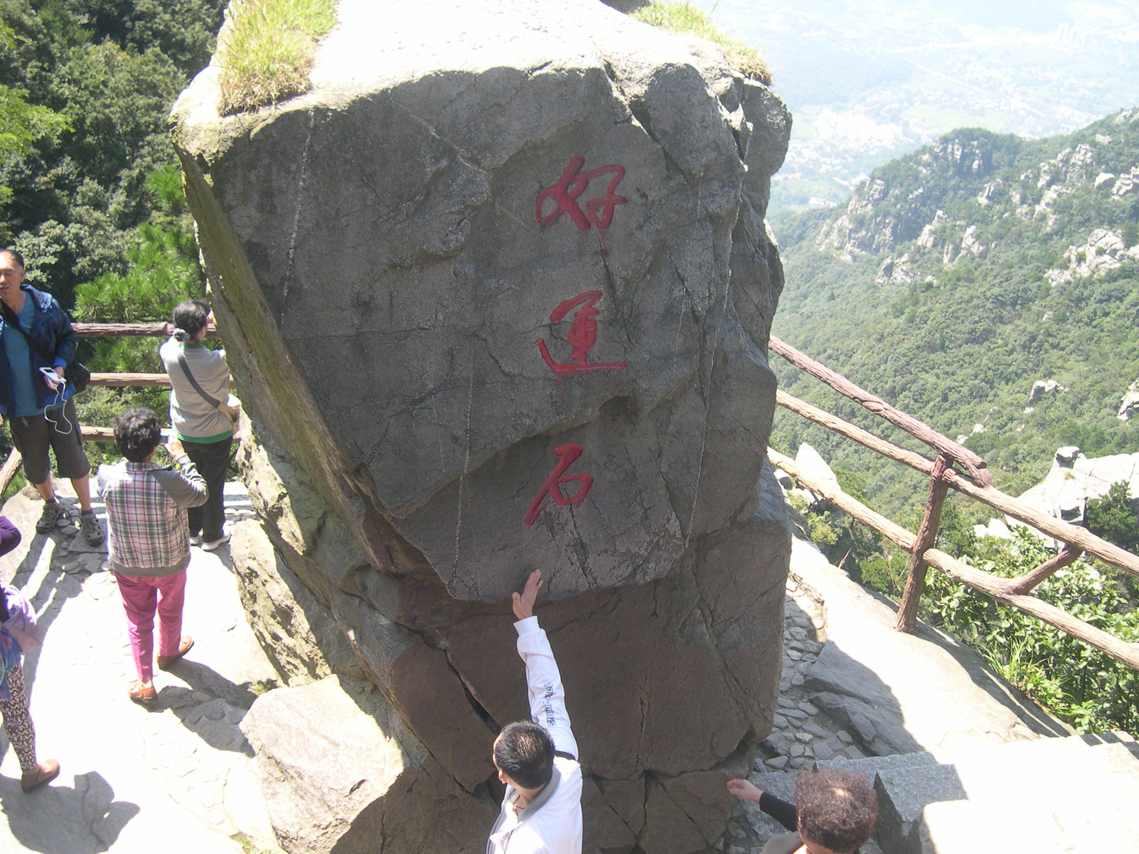 去仙人洞・,好运石是必经之地。说是“好运石”,充其量也就在巨石上面刻三个字涂上红色而已,就一块刻上字的普通石头,那些能胡扯的导游蛊惑游客说:男左女右,手摸石头能带来好运,一摸官运,二摸财运,三摸桃花运,再摸就怀孕了,我在旁边观察一会,还真有二货当真,男的多数摸两下,女士有摸三下的也有摸四下的,哈哈,一块普通的石头,凭胡扯不脸红的导游的玩笑话,多多少少反映出国人复杂的心境。