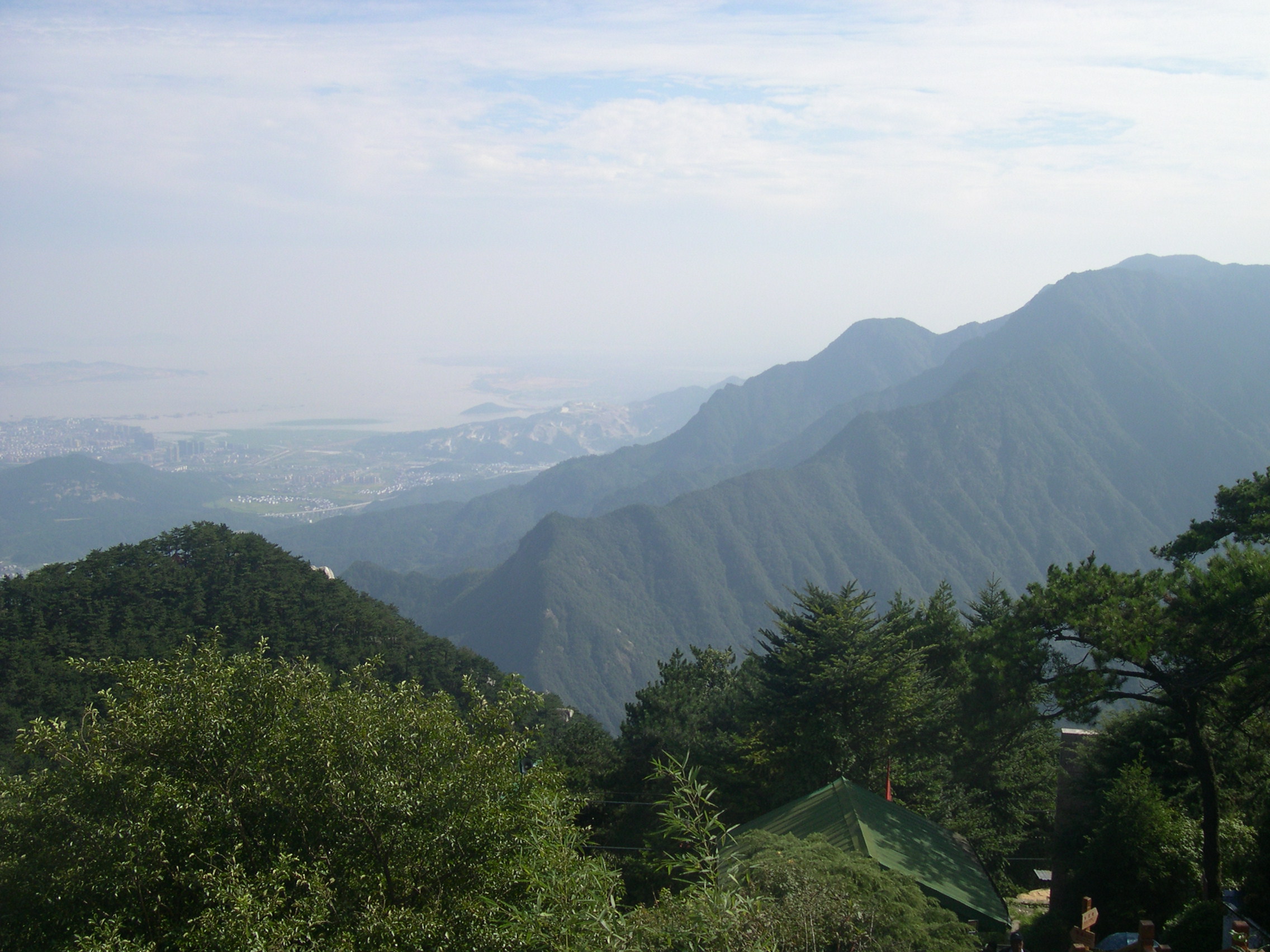 在三叠泉往下看,山下的房舍属江西省天星县,远处是中国第一大淡水湖 ―― 鄱阳湖