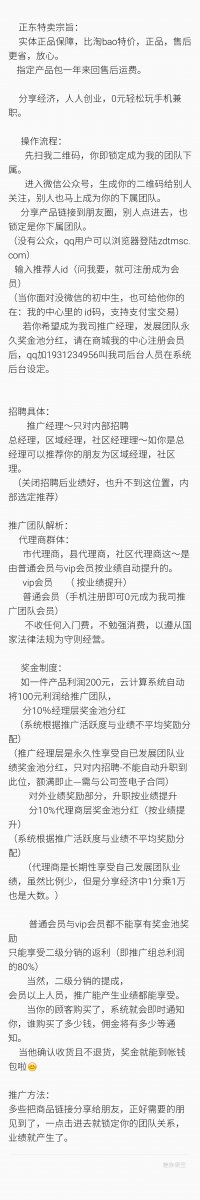 正 正东特卖 幼儿园 注册 2016-12-31 帖子 2 反馈评分 0 点数 0 性别 男 2016-12-31 #2 扫上面的二维码,就能成为会员,可以开始推广,而联系我即可在后台调为经理,永久有推广业绩。