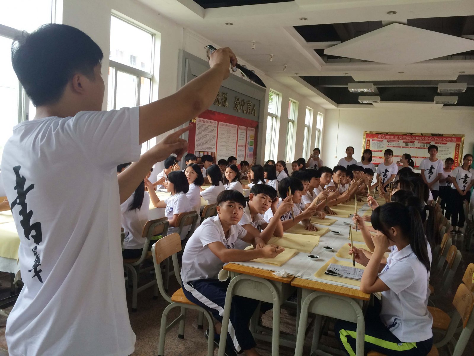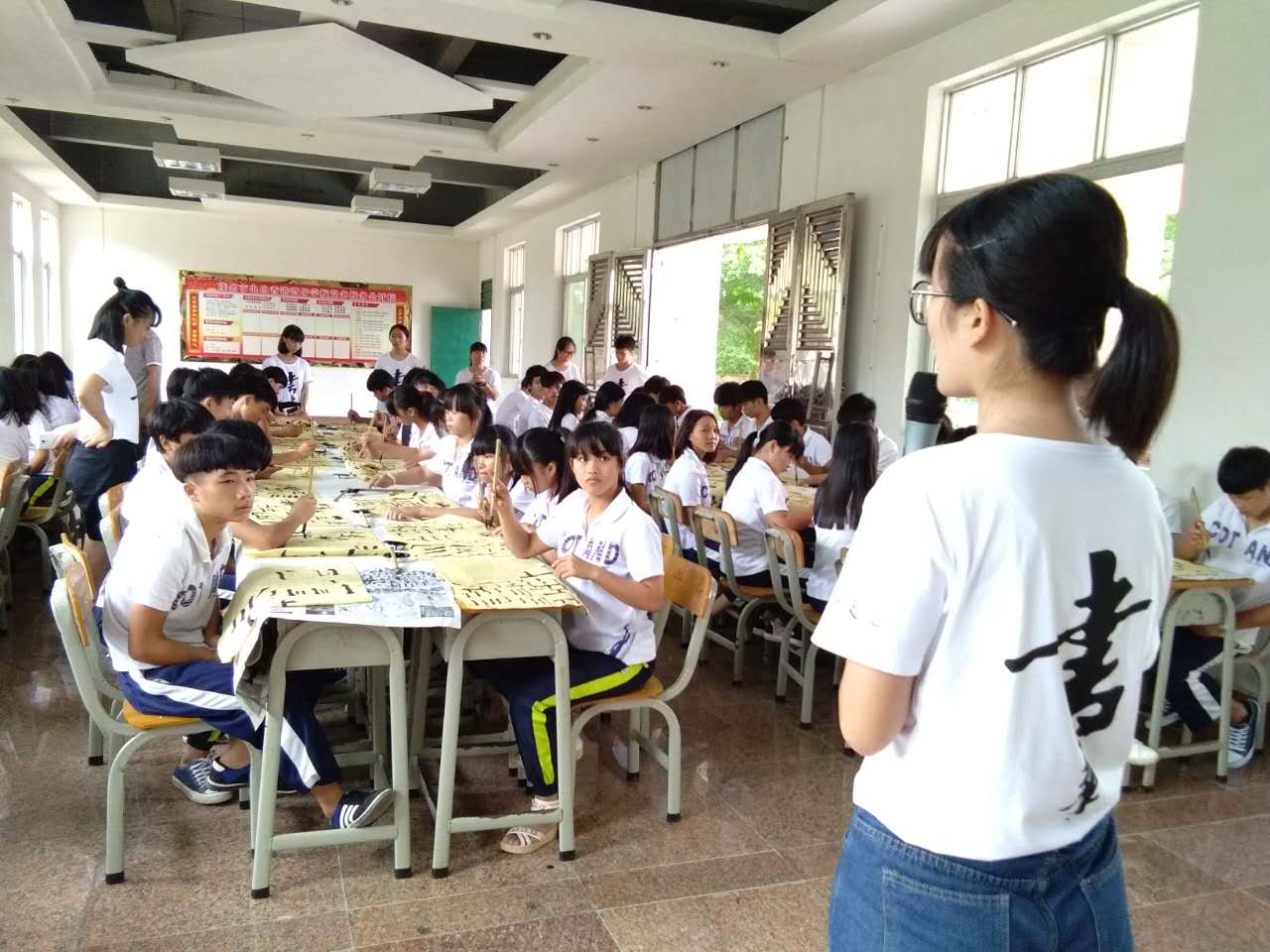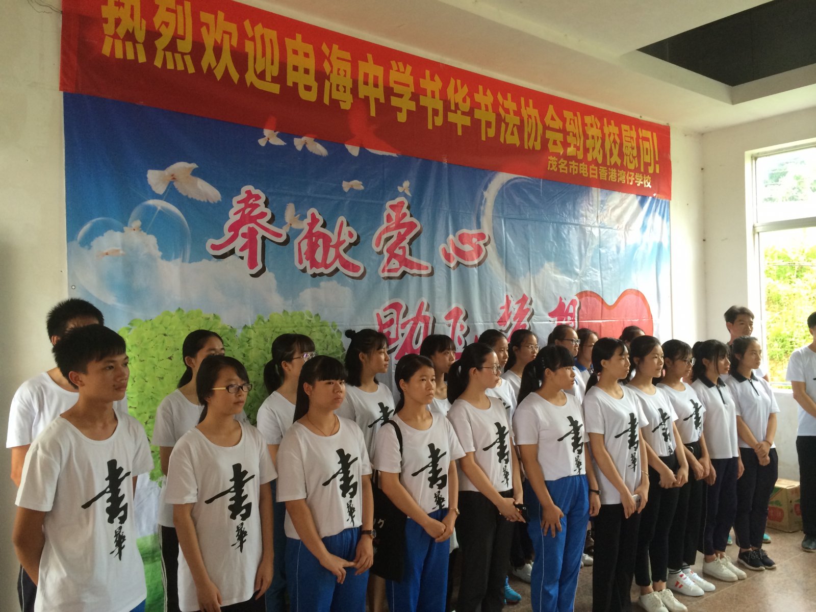 由电海中学“書華书法协会”携手大国工匠等爱心企业发起的献爱心活动——書華文化书法课堂于本本周周六早上走进电白区香港湾仔学校。书协的老师与学生带去师生们与社会各界捐赠的物品、慰问金及一批书籍等,并带去最宝贵最生动的一节第二课堂——书法课。课堂上,使用主讲老师授课,助教老师带动的教学模式,16位助教学生在四位主讲老师的带领下,第一次完成了这么大型的书法基础课程。全体湾仔小学学生共68人,他们第一次接触书法课,也是第一次有这么多老师同时授课,效果相当明显。