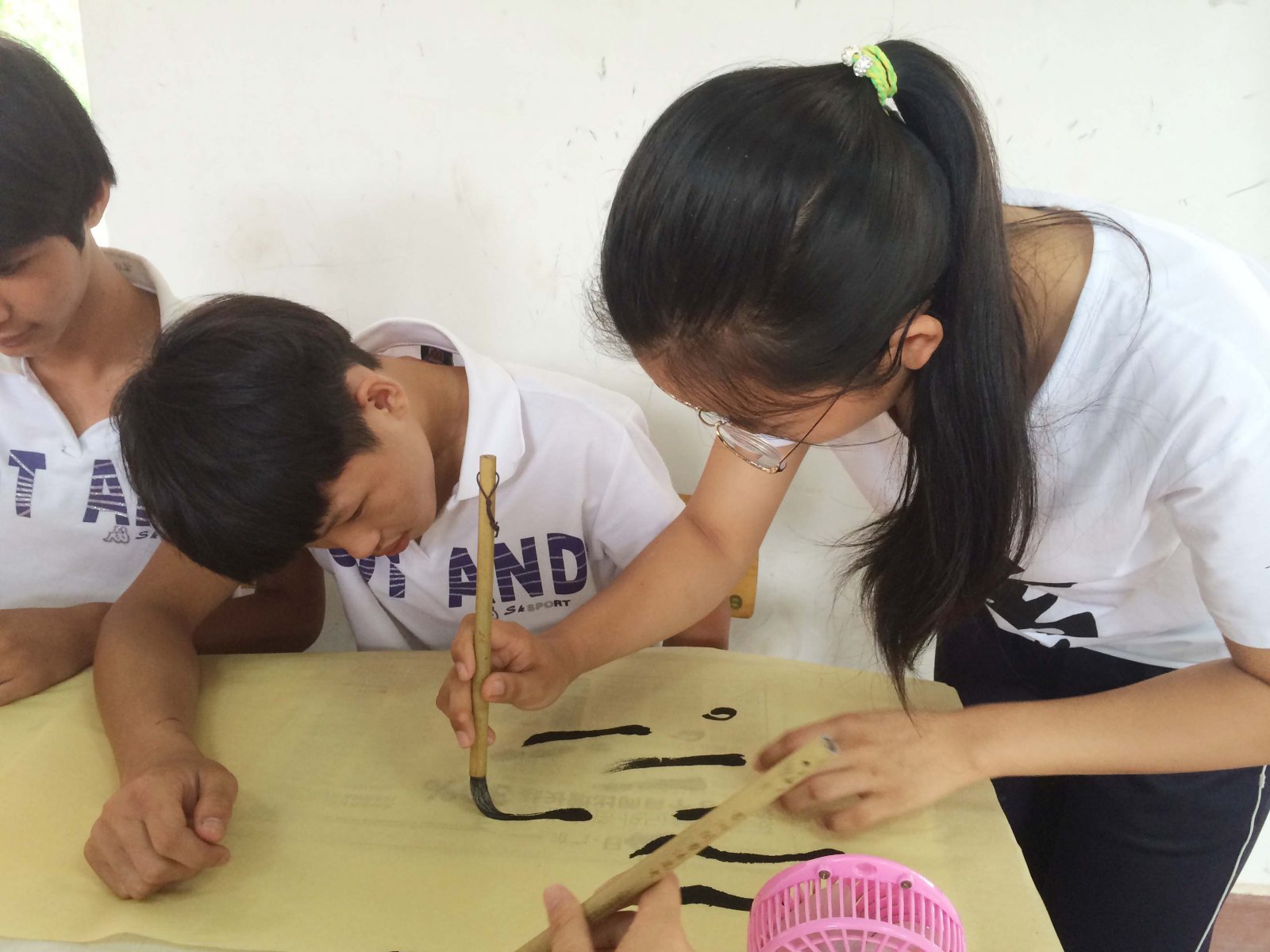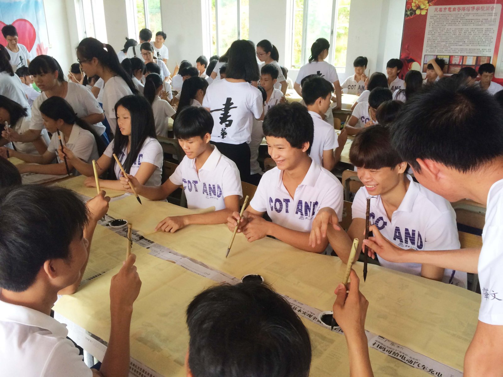 最后,在湾仔学校许校长的带领下,他们依依不舍得得告别,贫困的孤儿学生最缺乏爱,最缺乏中国文化传统教育在这里得到一丝满足!许校长还邀请書華书法协会为湾仔学校第二课堂的定点培训学校,书协的老师与同学们愉快地答应了!
