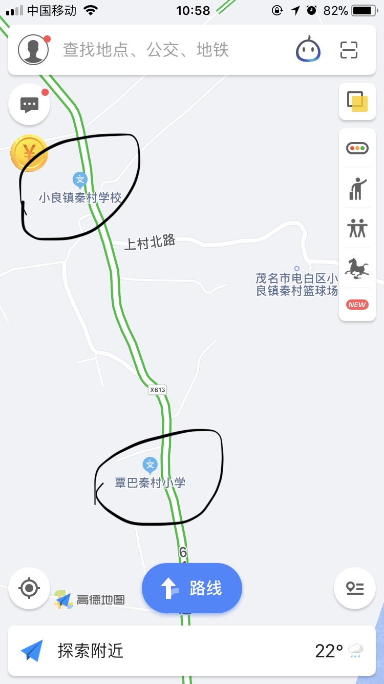 笔者猜测:电白茂港合并设区以来,茂名市国土局在数据分割时,没完全把茂港区的土地合并到电白国土范围,导致地图数据失去电白秦村。