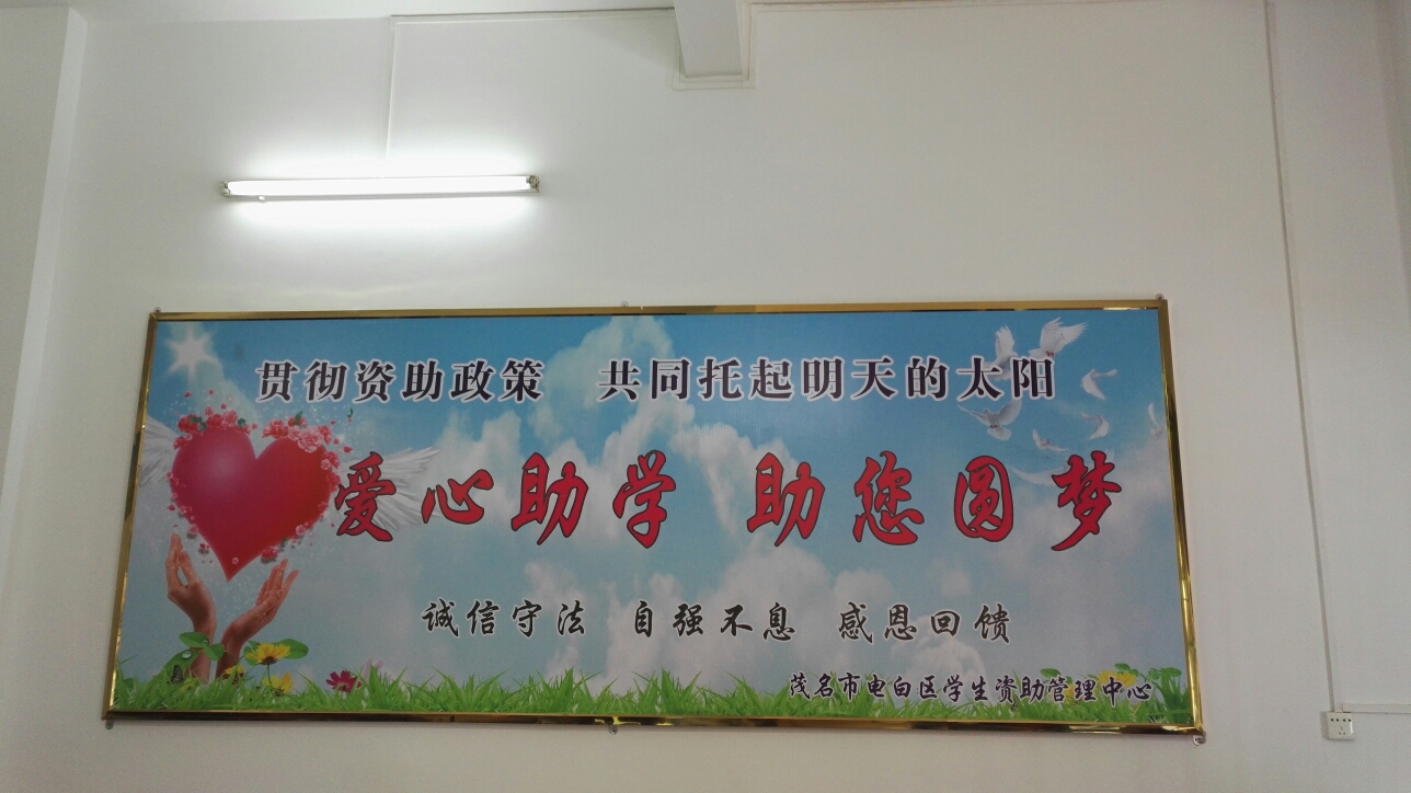 按照国家资助政策,广东省十件民生实事要求,2017年大学生生源地信用助学贷款已全面启动,现正火热办理中。电白籍有需要的应届及往届大学学子朋友请抓紧时间办理,截止时间为9月20日。办理流程:网上注册—申请贷款—打印申请表到村委、镇政府、就读高中凭一部门加意见盖章—带申请表、录取通知书(学生证)、学费单、身份证、户口簿及共同借款人的身份证、户口本,原件及复印件,与共同借款人到区教育局(水东海滨二路110号)一楼学生资助中心办理。具体了解可加入电白助学QQ群480250111,看公告及文件。至今,已为我区800多名学子,办理了助学贷款,持受理证明安心上学。