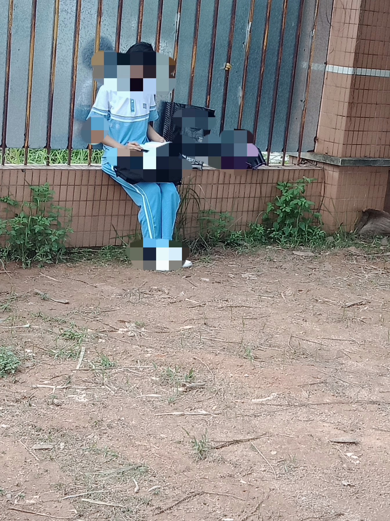 在某高考期间(因学校大门还紧闭还不能入校内),拟见一位诂是高一或高二学生独自坐在校墙壁上,默默复习着~