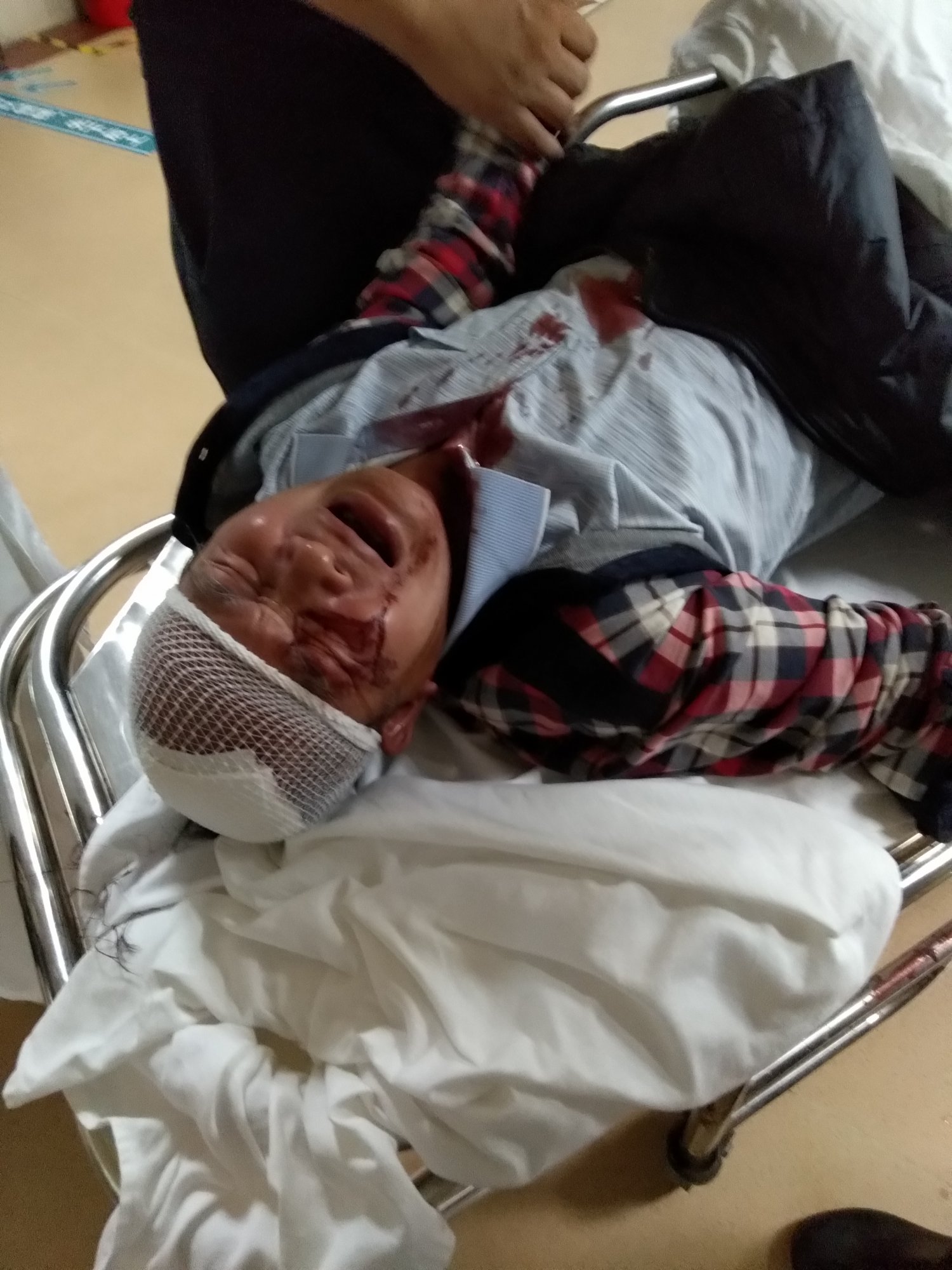 今天下午广隆岭村举办重阳节敬老活动,聚餐结束后,村委干部郑庆书刚回到家,就被郑振才冲入家中拾起凳子袭击头部,郑庆书顿时倒在血泊中。郑振才先是去村长家中找郑庆书没找到,后面去到家中进门就打,郑振才目前已逃跑。郑庆书被送往电白区人民医院救治。目前没生命危险,但是神智不清了,一直在哭泣说胡话。本来好端端喜庆的日子却被搞得这样,希望警察部门尽快将歹徒绳之于法。 浏览附件318986 浏览附件318987