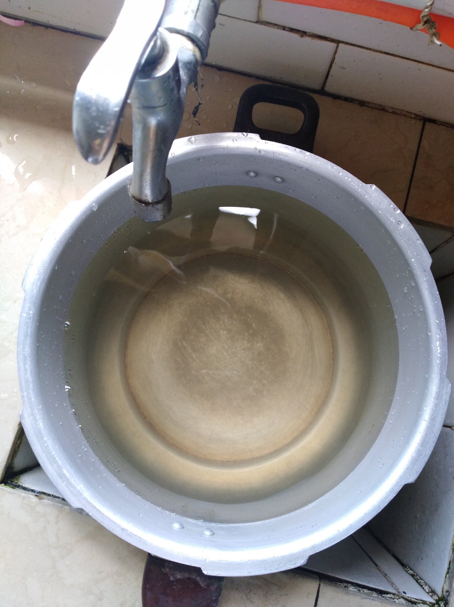 用水都先放在大水桶里沉淀半天,桶底很多黄色的沉淀物。