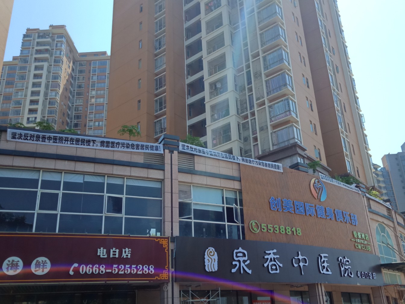貌似看了横幅像是抗议反对在此铺面搅什么医院~
