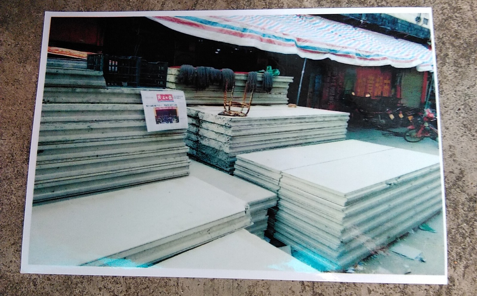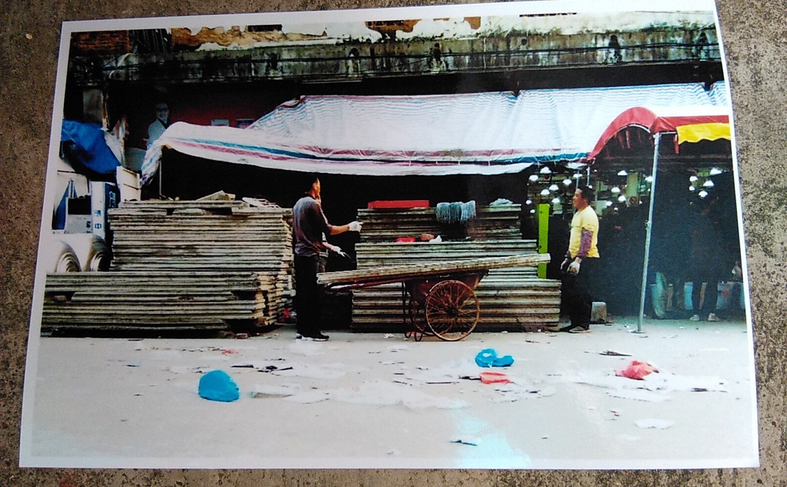 下面三幅图为李文河用大量水泥板把那霍市场围堵起来的情境: