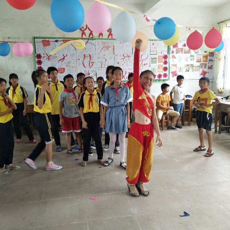谢谢老师们细心装扮。化完妆的我们美美哒。准备出发上台表演啰!