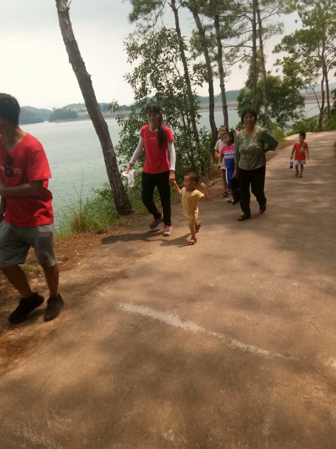 我在高州水库游览时,遇到了住在上九(狗?)山山区的两位壮年农妇,她俩正在进山的分岔小道歇息,我赞扬了她们知足常乐,也欣赏她们有一副强健的身体。进大山的小路可以骑摩托车,小路口有一棵古木,树干粗,高高的,不知树名,要来一个130度角才能望到树梢。我行走的库区山路,不停有山民出现,也有读书郎在游览库区风景,更有一个年轻的母亲,带着一对小女儿在水边休闲,什么叫幸福?对于这位母亲来说,幸福就是一个个愉快的生活小节构成的。我手上有一只近两斤重的乌龟,这是受一位沐恩信士委托从水东带来放生的,我挑选了一处阴凉的水库边把它放归大自然,看着它慢慢游向了那座小岛,一颗悬着的心也放下了……