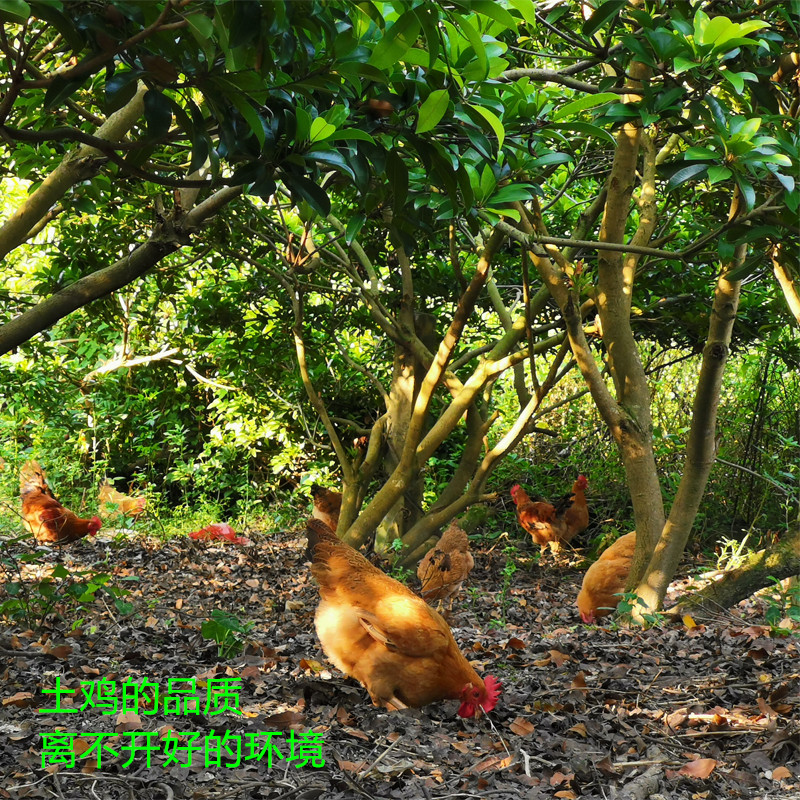 鸡成长的环境优美,有足够的青草啄食,足够的场地活动,水是检测笔测的水17ppm值的山泉水。