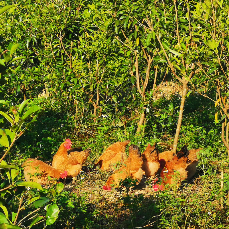 果园三十亩地供鸡活动,喂养中药材与谷子,青草,提高鸡的免疫力,无激素。
