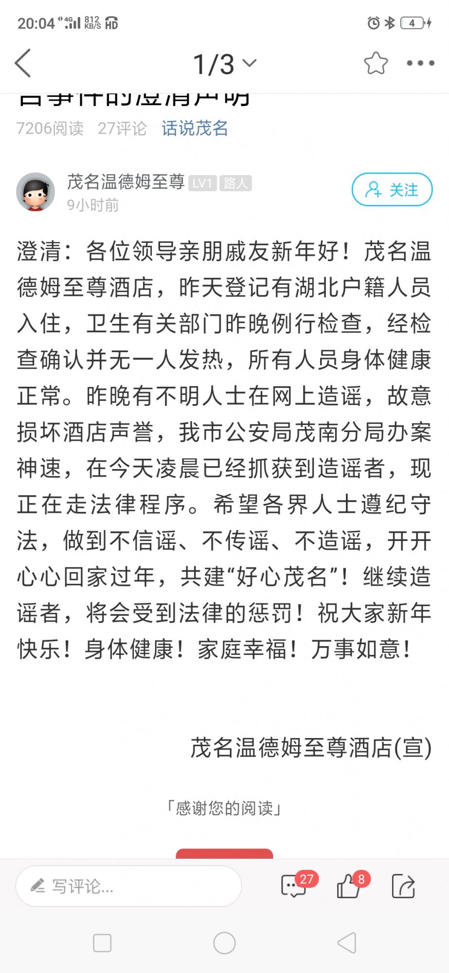 温德姆酒店不知道潜伏期没症状也能传染吗?为了自己的经济利益就随便断定别人造谣传谣