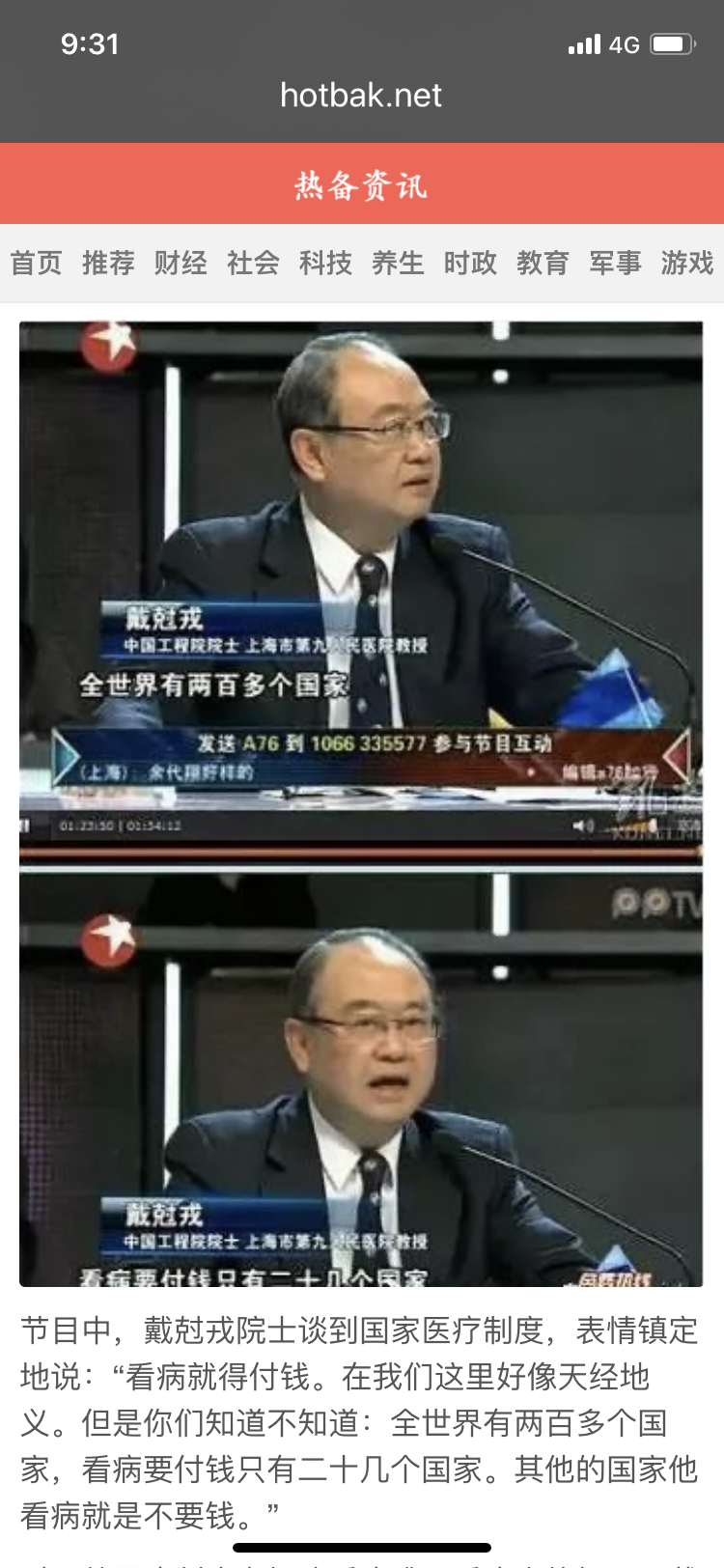 真TM无语,被“世界200多个国家看病收费的只有20多个国家”这种话打败了。世界上没有免费的午餐,无非是从支付者是个人对自己负责改为全体国民为所有个体付账。而且全世界这么多贫穷的国家没有建立医疗体系,哪里来的不收费的医疗。这种胡话根本没有根据,别被欺骗。 中国医疗缺点很多,但我们要做的是改进,而不是作为谣言的帮凶来无端抨击,只会让大多数人不了解真相。