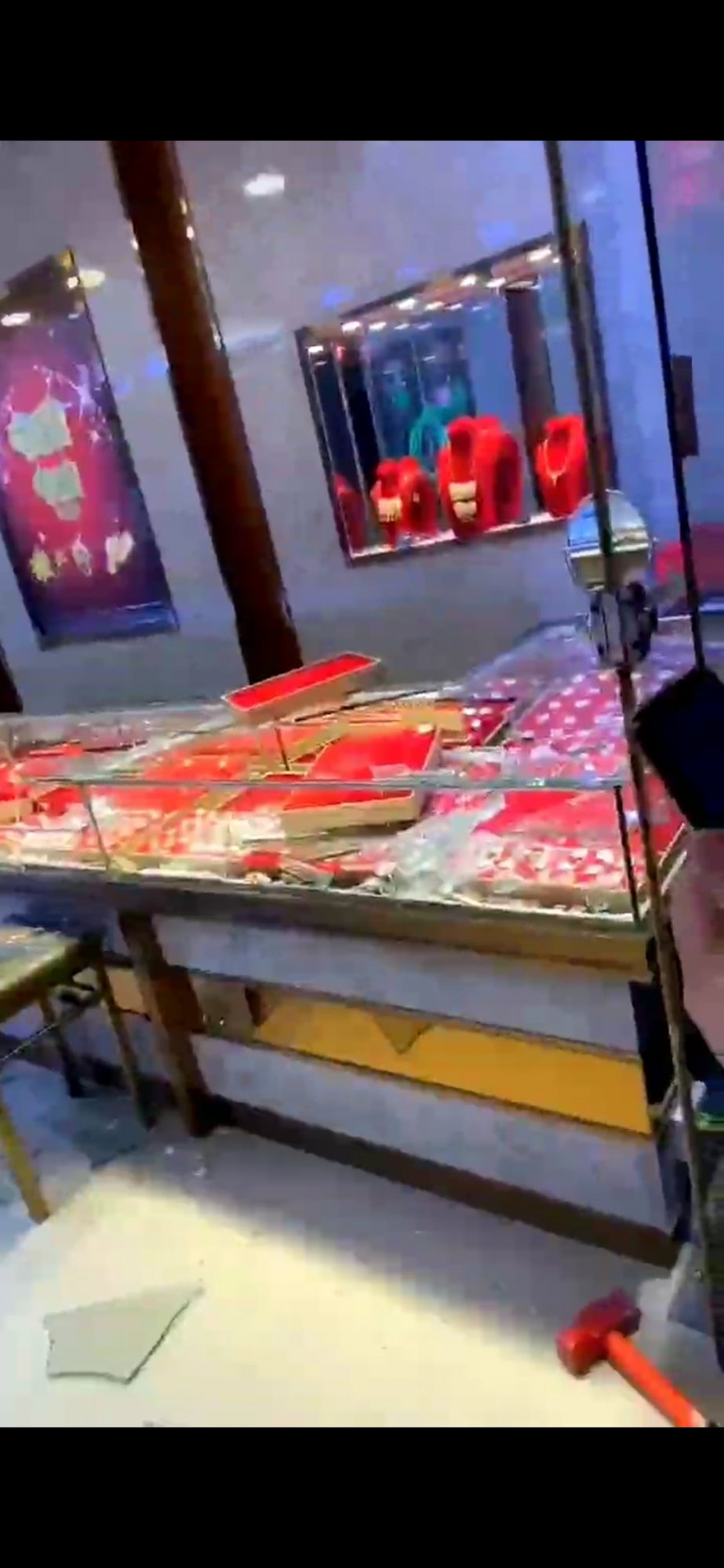 法治社会,从何“治”起?霞洞镇政府门口发生抢劫事件,金六福金铺被蒙面人用铁锤砸开玻璃柜抢劫
