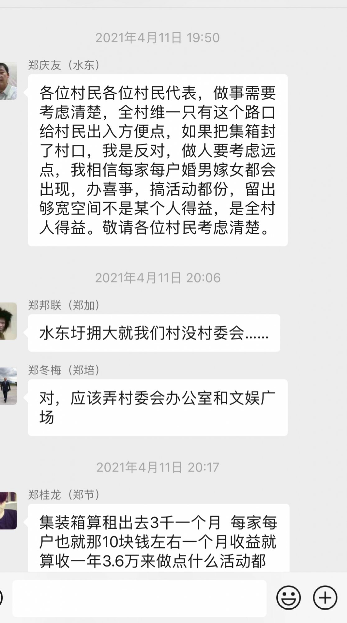 民主自决,少数服从多数。这段时间收到多名村民的私信,多数是反映村口空地处置问题。主要有不满村口停车乱象影响村民出行问题,也有不乐意见空地被边上几户人占为己用,建议要么好好利用起来做公益,要么盖回村厕所。也有人多次说到郑庆友私心重。