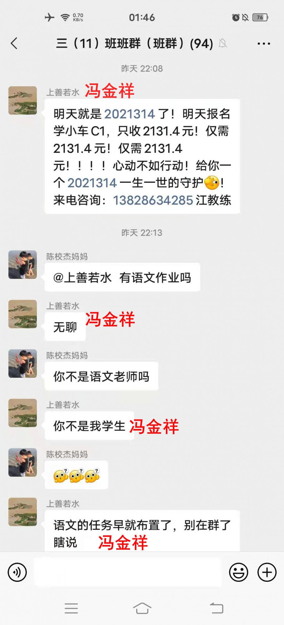 这个冯金祥老师在自己的学生家长群里发广告,大家接着往下看就明白他是多么的垃圾了。