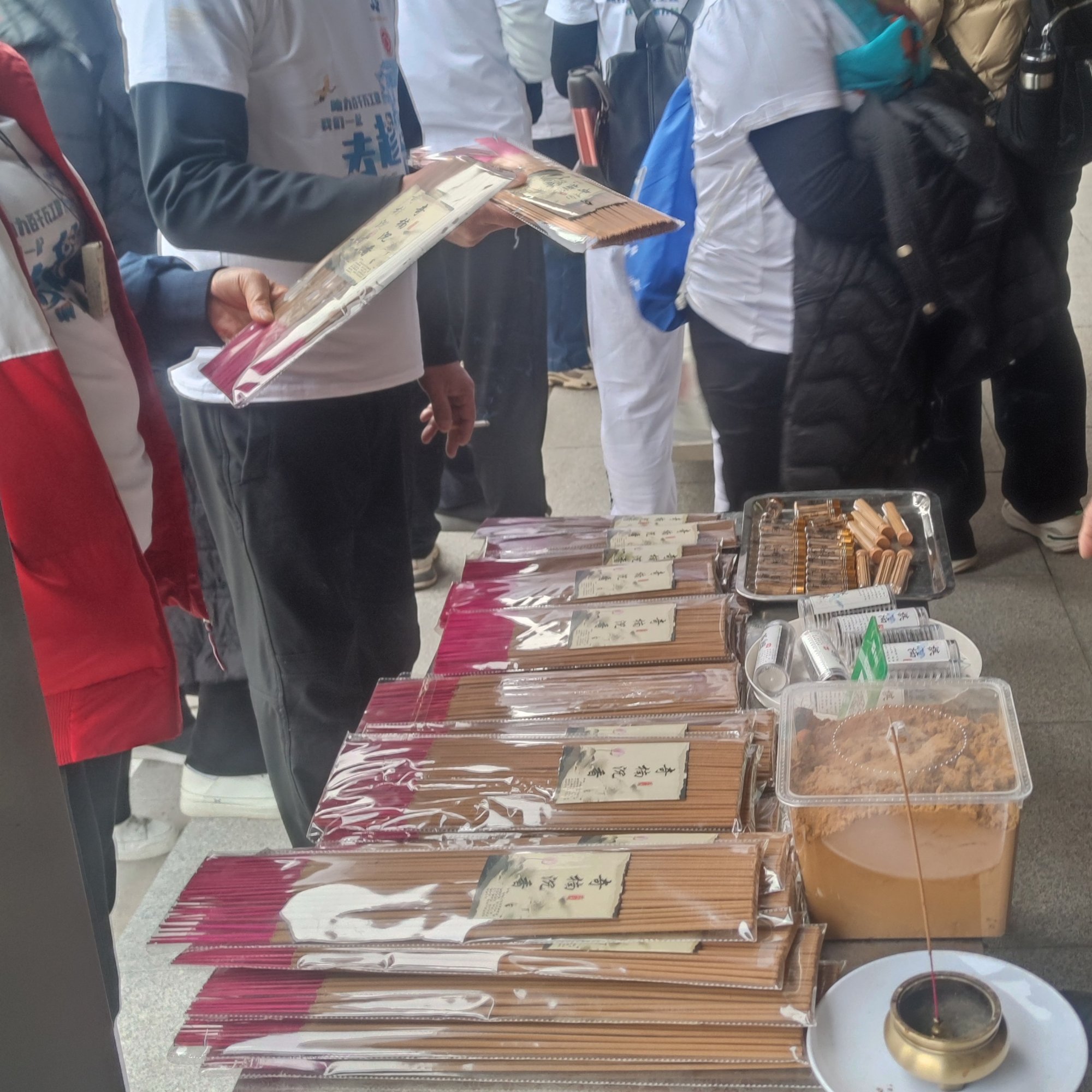 沿路线一路慢步徒行,走了…许久…走到一个补及点拐点…领了补及与…有些人像领了些香柱等…沿着来的路线往另一边路回走…两边商铺加工厂早己开门,有好多徒行者进出…观赏…或购等等…我也进去观摩观摩…许后又走出街道,见有补及点…