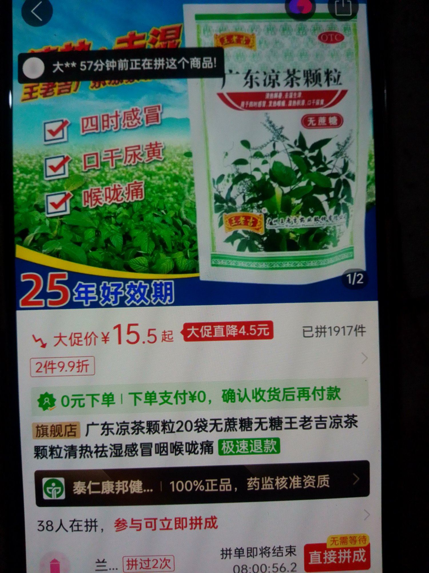 广东凉茶颗粒20袋/包(无蔗糖)大参林29元/包。