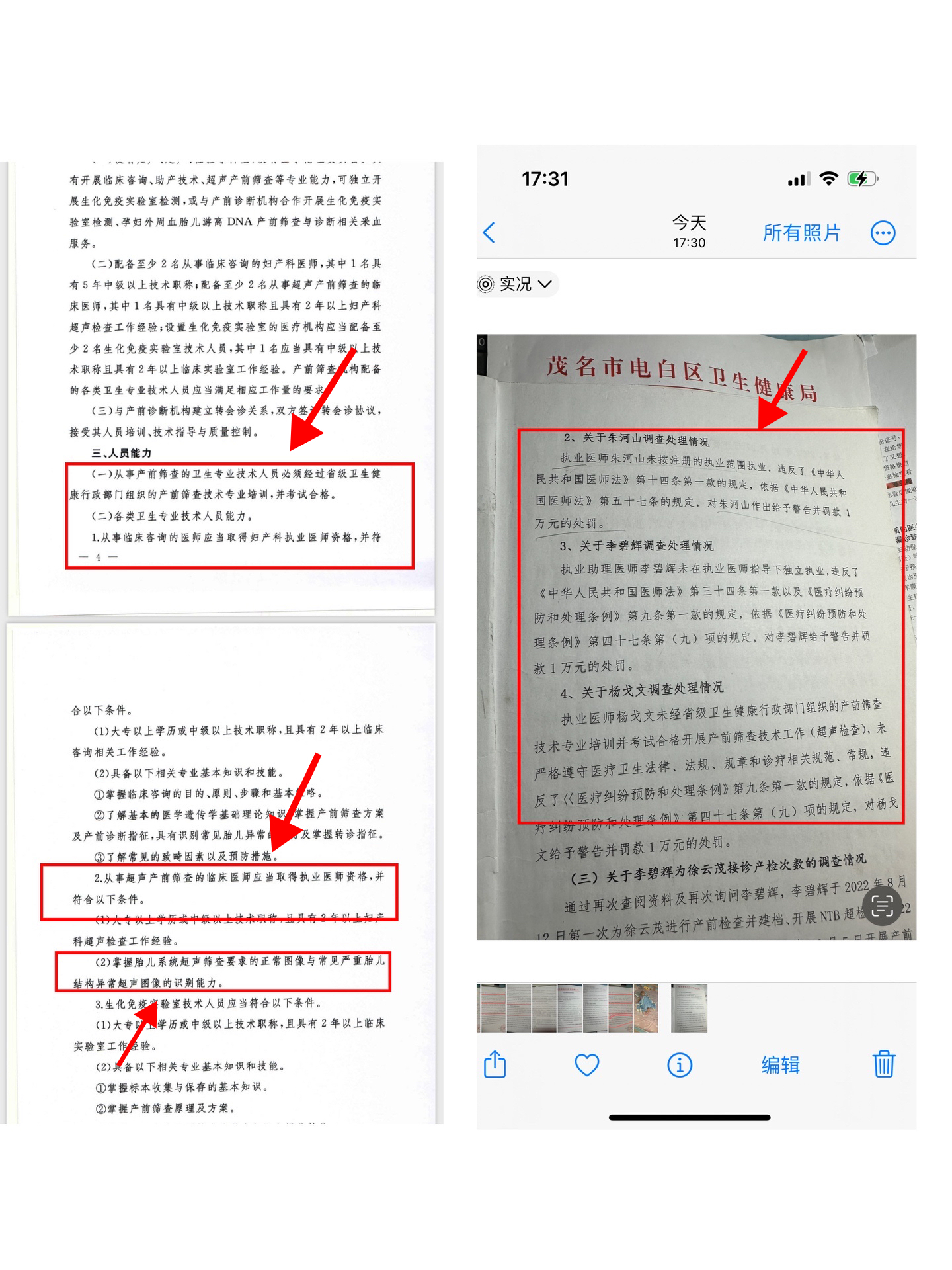 大家好,我是电白区妇幼保健院产检受害者家属,2022年8月12日我妻子在该医院建档并在当日就开展各种检查,直至2023年1月4日,共计在该医院做了(6次超声以及其他各项常规检查),均告知我们说胎儿没有异常,出于对他们结果的信任因此我们也没有去别的医院复查,然而我女儿在1月15日出生后发现四肢手脚指不同程度严重缺陷。手脚指一个外表存在如此大的缺陷,产检那么多次没有检查出来令我百思不得其解,我在孩子出生当天就打电话问当时负责我妻子产检的门诊医生李某辉为何会漏诊,该医生当时没有为我做任何解释,只是叫我把四维超声检查报告发给她,过了三天一直没有给我回复,我就在微信给她留言说现在不给我回复,到时候等我孩子满月我们还是要过来讨个说法的,就在我留言第二天后,该医生才给了个回复,说我们当时签了什么知情同意书,故手脚指未检查出与他们无关,但她是“执业助理医师"和未取得”产前筛查资质"为孕妇开展产前筛查是属于违法行为的事却只字不提。其实当时她几天不给我回复就已经加深我对他们产检过程的怀疑了,只是当初懂得太少,又远在千里。