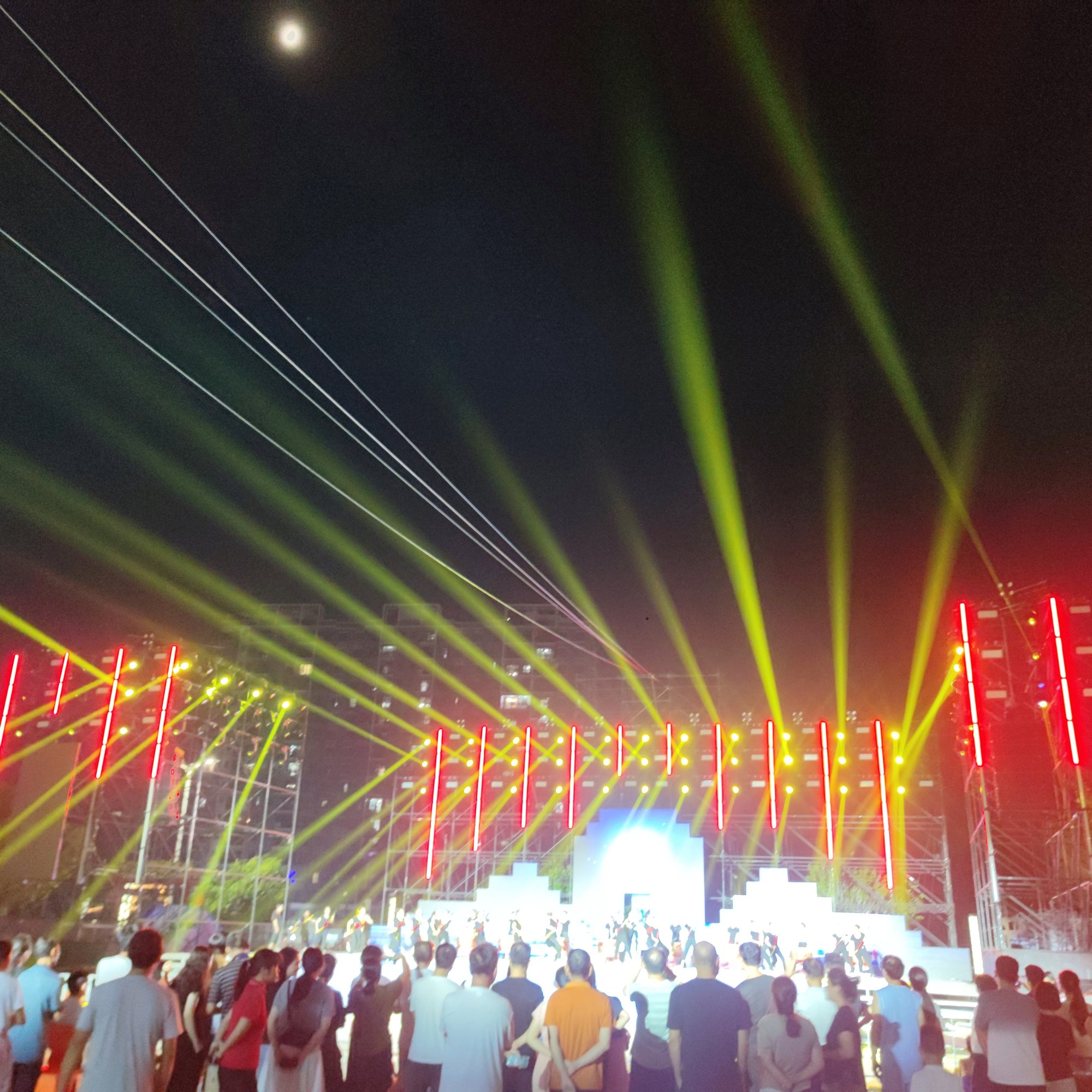 听说、靠近舞台的,可能有位坐的要扫码预约等等??不过在外围较运点的地方看也看得很清晰,很整体,立体感,反正感觉下气氛也很好很不错,而现场继续在演练排练,现在围观的群众也算挺多的,有人说过人文景像,人来人往车来车往的热闹氛等等也是一道靓丽的风景线
