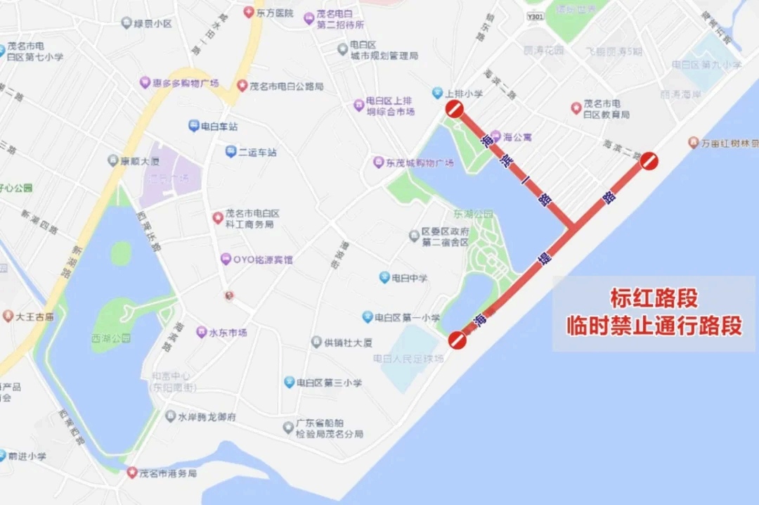 二,管制路段:海堤路(电白一小后门路口至海堤路花禧店门口)