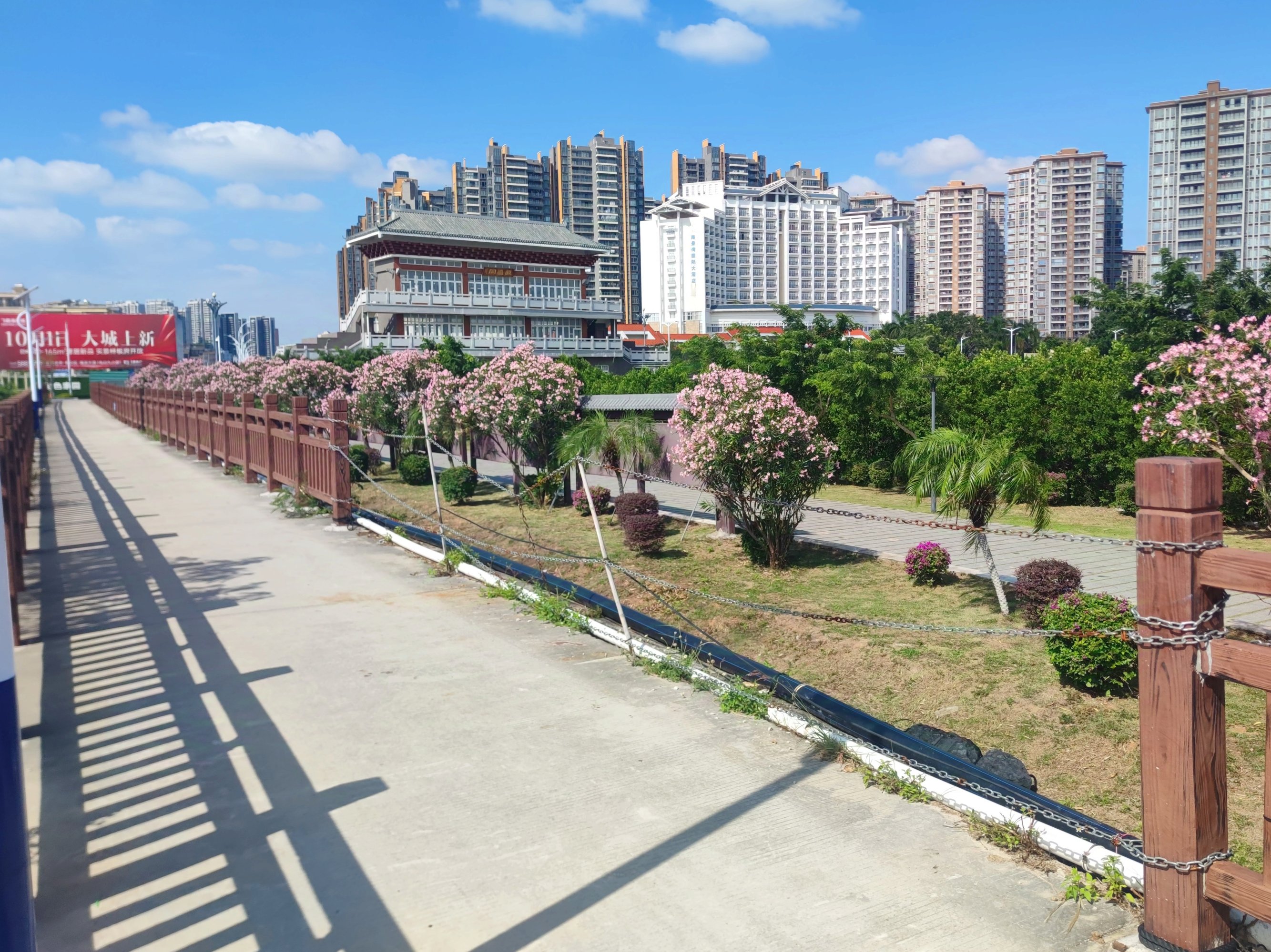 其实我一直在想,为何亲爱的游客游人徒步群众等等,是不是走到观鹭阁路,被里面的夹竹桃花还是其它花类吸引?而站在这个石阶道上,又刚好平衡靠着桃花背景拍照景,或还是这条通往游艇码头的路基面与绿道持平?还是其它原因??