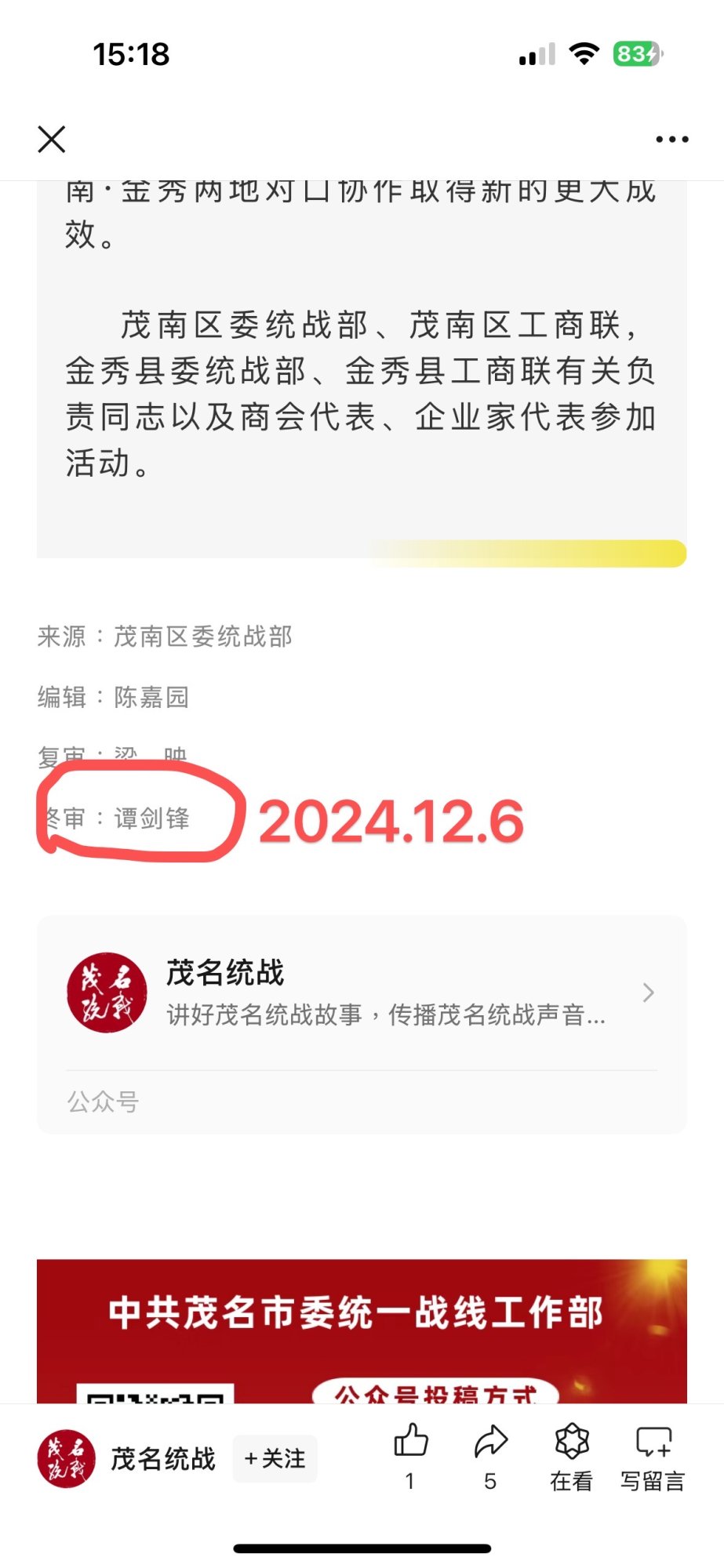 jming 学前班 注册 2008-04-26 帖子 64 反馈评分 1 点数 0 2024-12-13 Android Chrome Mobile 131.0.0.0 #14 hchcc 说: 统战部公众号文章终审人悄然换人了 浏览附件371191浏览附件371192 点击展开... 一个电白区,一个茂南区。