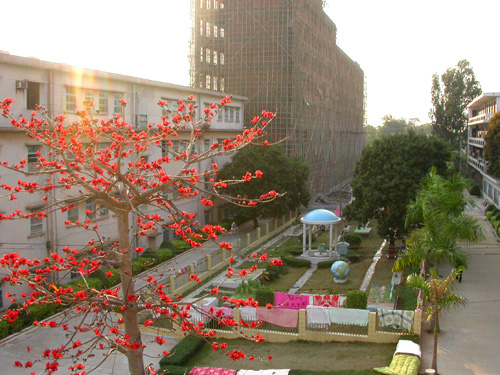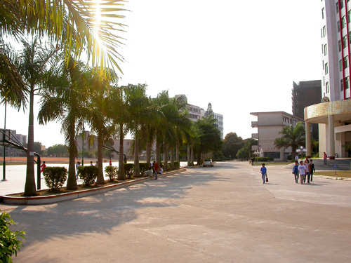 另一边的宿舍区,那栋宿舍应该是翻新过了,记得以前很旧的...